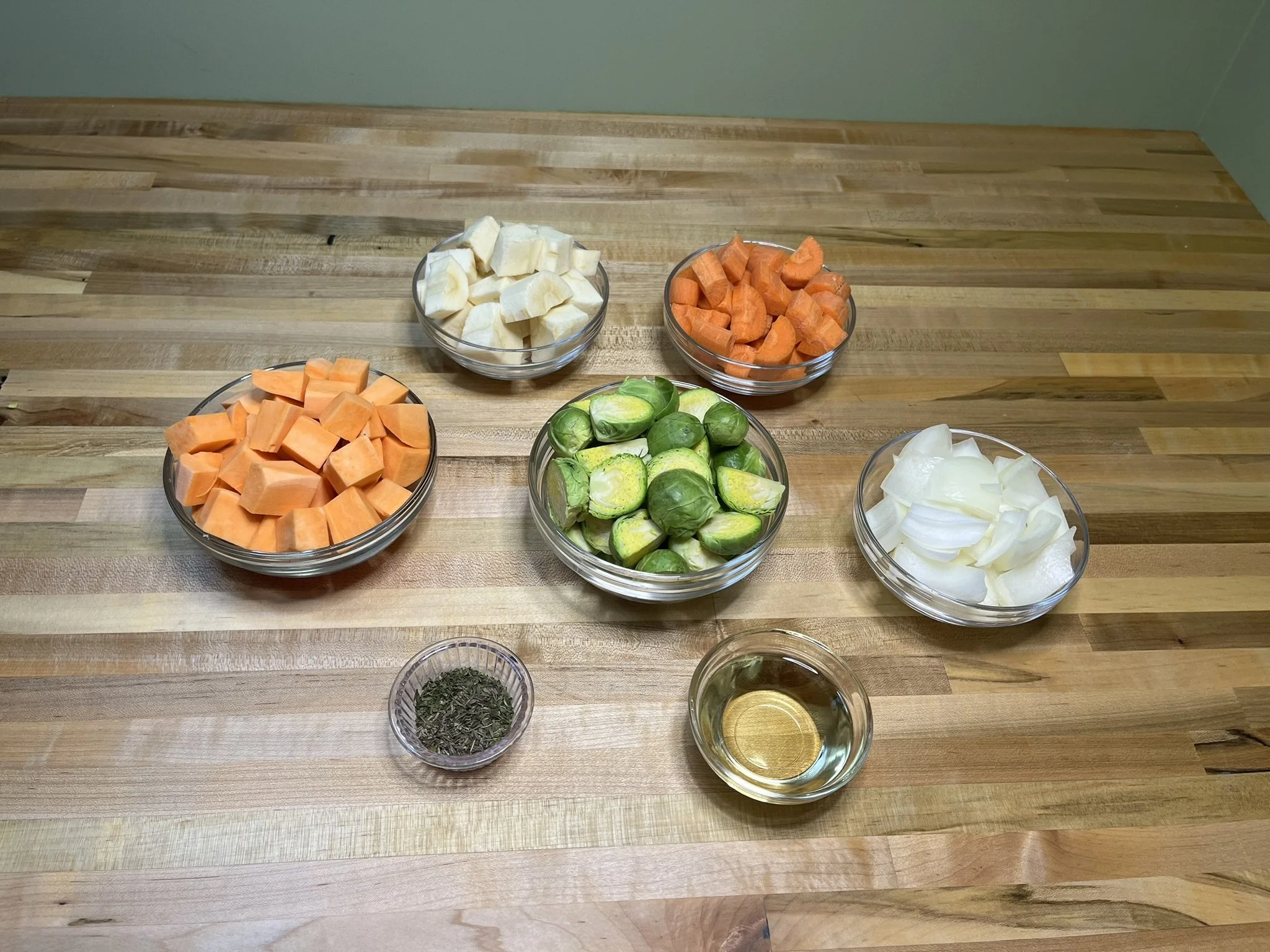 To make ahead: Vegetables can be peeled and chopped 1 day in advance. Store in an airtight container in the refrigerator.